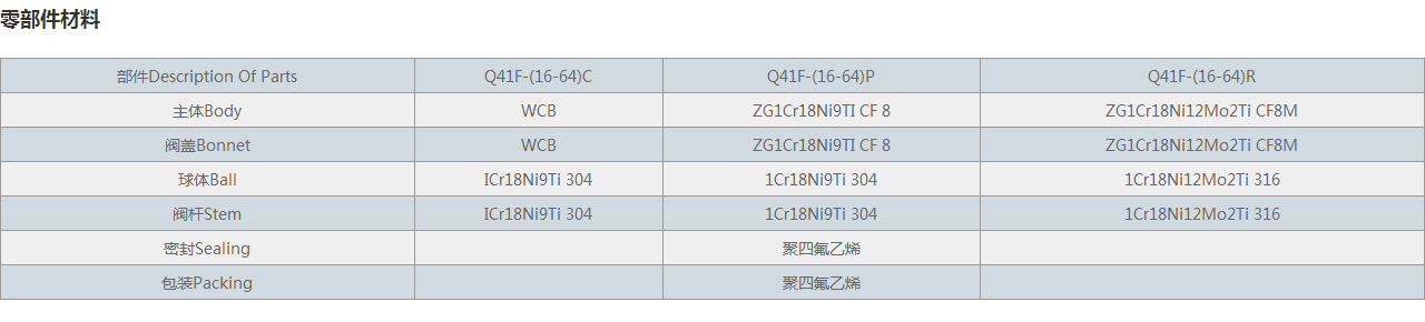 | 部件Description Of Parts | Q41F-(16-64)C | Q41F-(16-64)P | Q41F-(16-64)R |