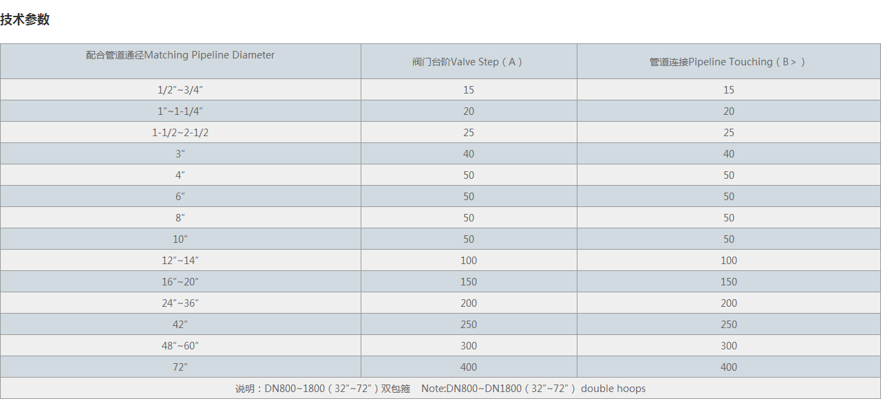 | 說明:DN800~1800(32″~72″)雙包箍 Note:DN800~DN1800(32″~72″) double hoops | ||