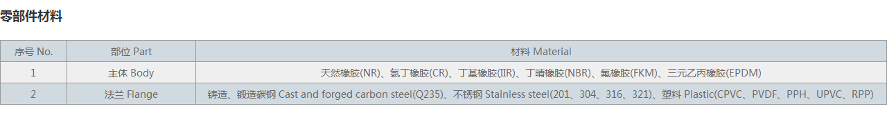 | 2 | 法蘭 Flange | 鑄造、鍛造碳鋼 Cast and forged carbon steel(Q235)、不銹鋼 Stainless steel(201、304、316、321)、塑料 Plastic(CPVC、PVDF、PPH、UPVC、RPP) |