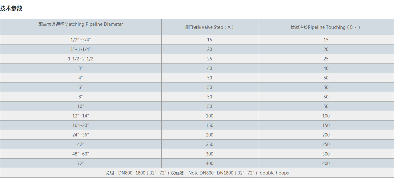 | 說明:DN800~1800(32″~72″)雙包箍 Note:DN800~DN1800(32″~72″) double hoops | ||