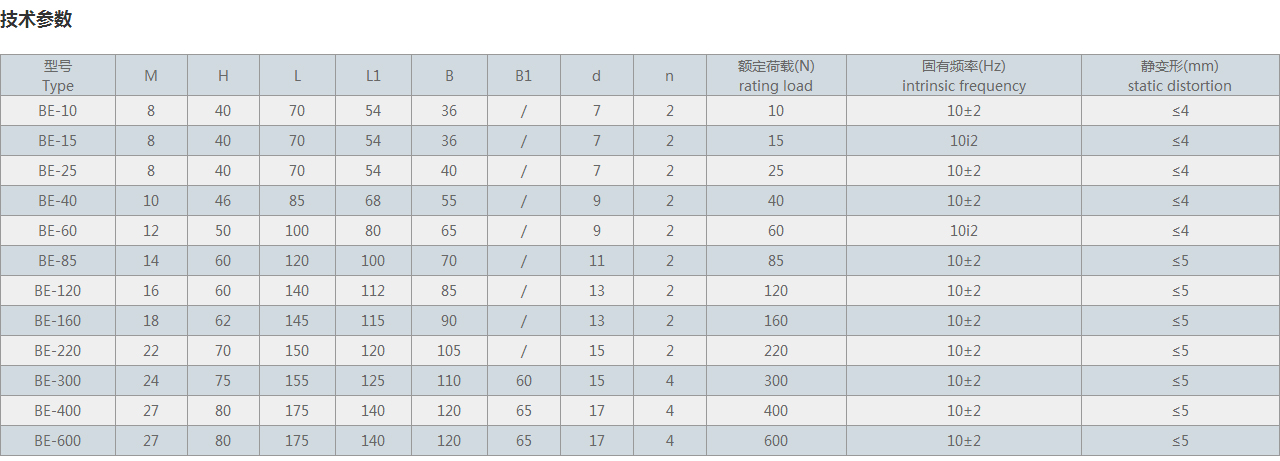 【產(chǎn)品名稱】:BE型橡膠避震器