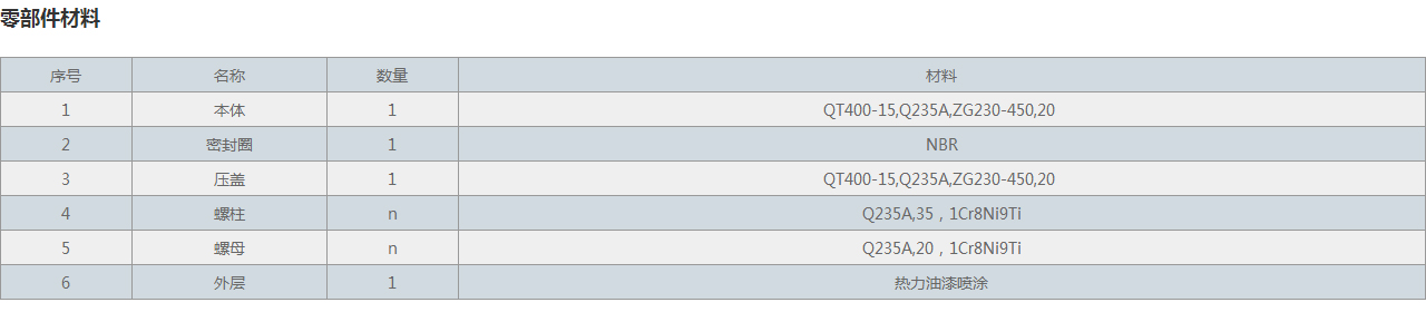 | 5 | 螺母 | n | Q235A,20,1Cr8Ni9Ti |